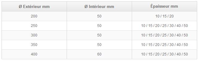 Meule Ø 250 mm – rayon de 20mm – alésage 50/35 : 595 € hors taxes