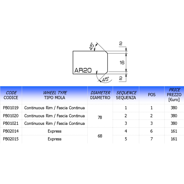 MEULE PROFIL AR DIAM. 80MM EPAISSEUR 12MM ALESAGE 35MM POS. 2 (VELOCE) € 380,00