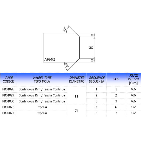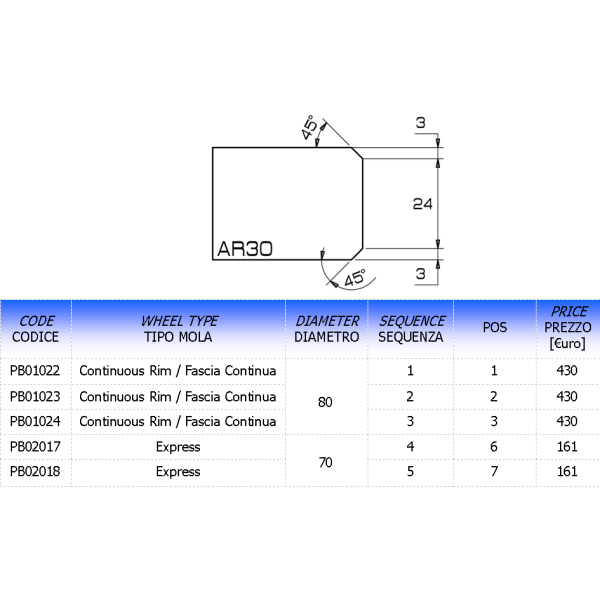 MEULE PROFIL AR DIAM. 80MM EPAISSEUR 12MM ALESAGE 35MM POS. 3 (VELOCE) € 380,00