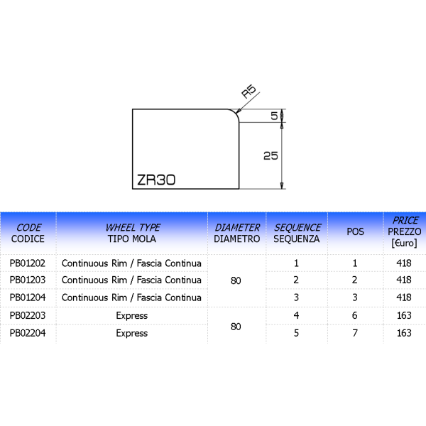 Profil ZR - meule de polissage