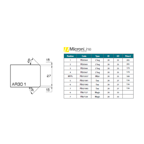 Position 1 : meule diamant métal à jante continue