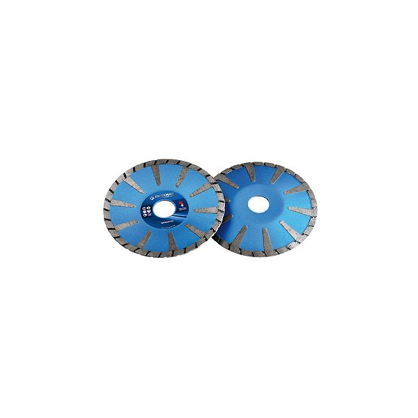 Disque concave pour granit avec couronne type turbo et renforcements diamantés par les deux faces, spécialement conçu pour faire coupes courbes de précision maximale grâce à son épaisseur fine.
