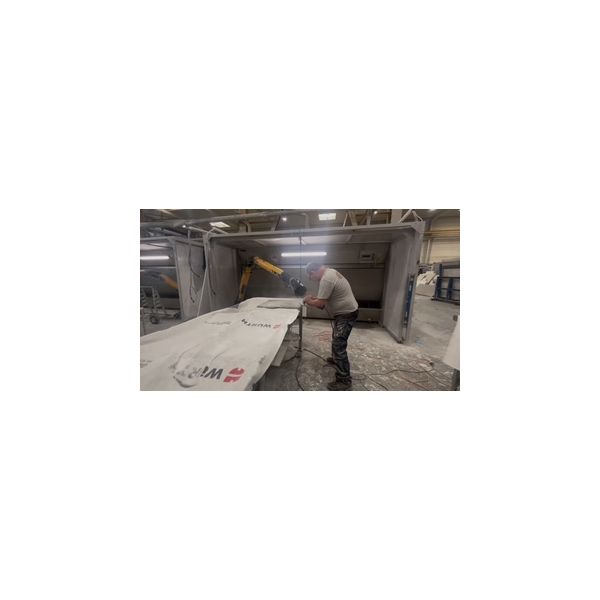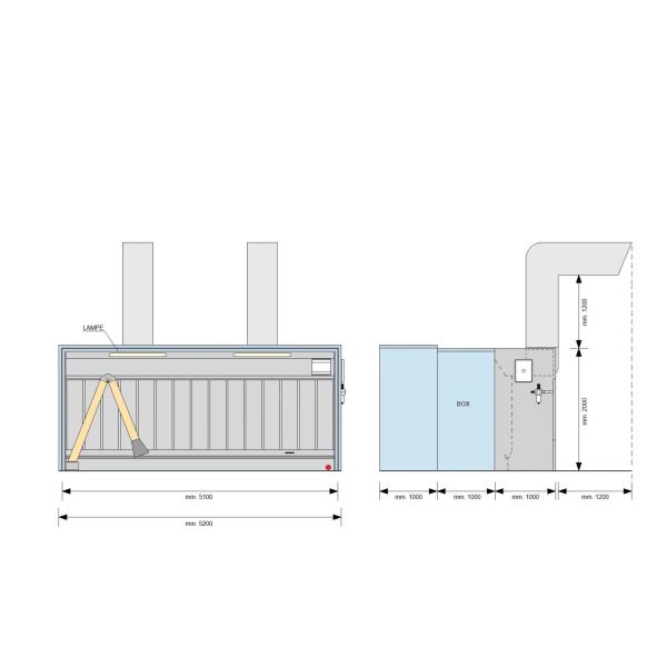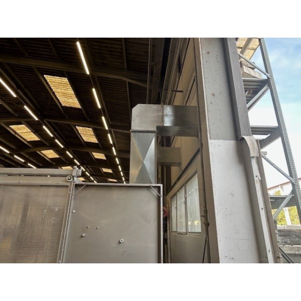 A l'intérieur est installé un autre abatteur à buses, nécessaire pour le dépoussiérage complet de l'air aspiré.
