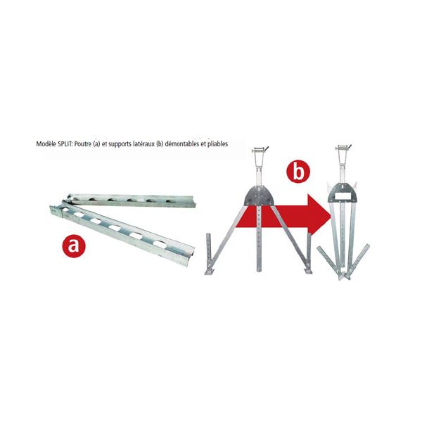Modèle SPLIT: Poutre et supports démontables et pliables.