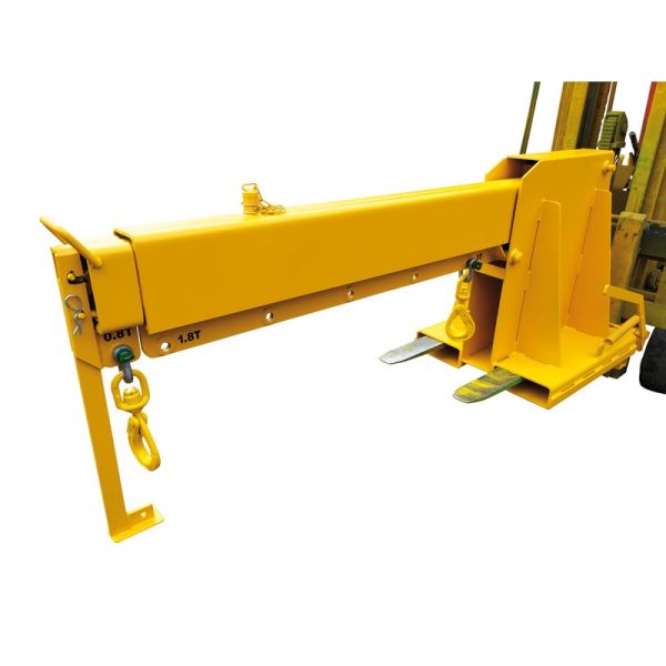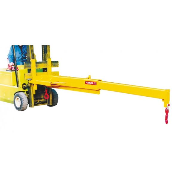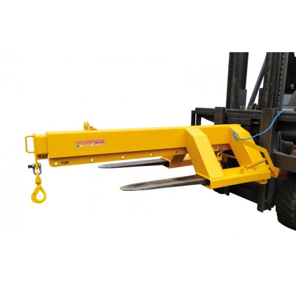 PREHENSIBLE PAR : Chariot élévateur (1 entrée) directement sur les fourches. Un dispositif de blocage derrière les talons des fourches rend ainsi la potence solidaire du chariot élévateur.