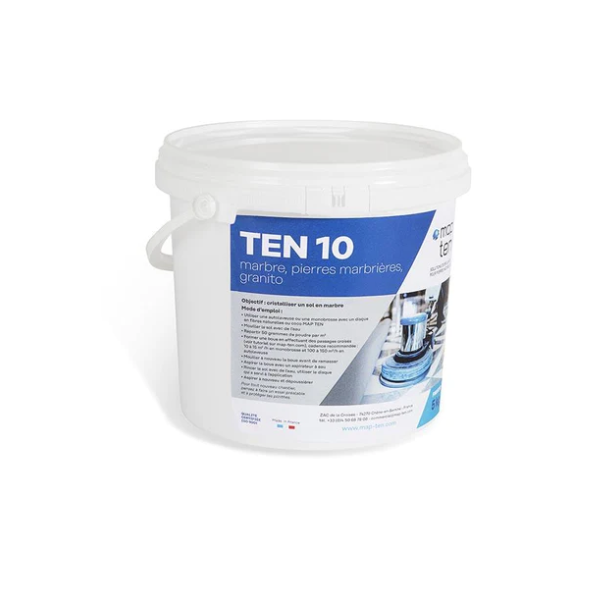 La poudre TEN 10 SP dégrisaille les marbres de couleurs claires sans altérer leur surface. Elle augmente la brillance et ravive les couleurs des pierres calcaires.
