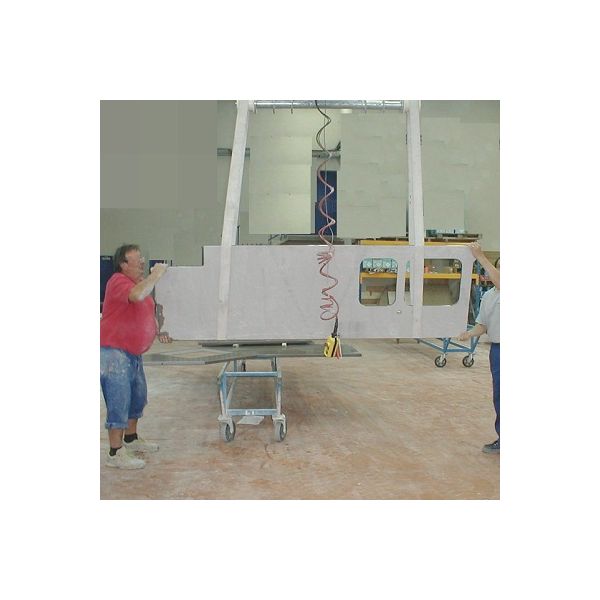 Crochets de ramassage réglables latéralement pour le fonctionnement des grues et des chariots élévateurs. Roues verrouillables qui évitent la rotation indépendante pendant le transport.Retourneur de plaques 1500 kg